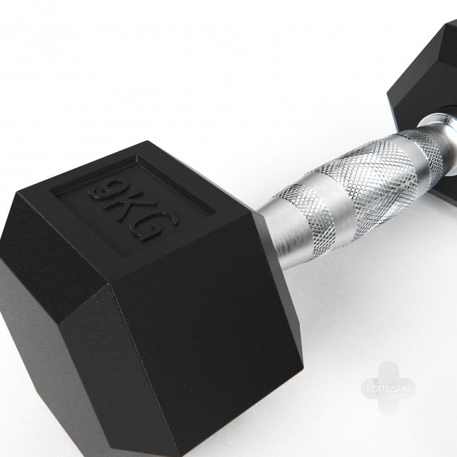 Гексагональная гантель – обрезиненная модель удобной конструкции.
